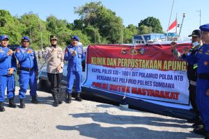 Sumbawa, SelarasNews.id – Polres Sumbawa Polda NTB melalui Satuan Polisi Perairan dan Udara (Sat Polairud) melaksanakan program unggulan Baharkam Polri, yakni Poliklinik dan Perpustakaan Terapung, pada Jumat, (03/10).