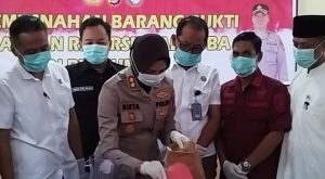 Kapolres Sumbawa AKBP Marieta Dwi Ardhini, S.H., S.I.K., memimpin langsung kegiatan pemusnahan barang bukti yang dilaksanakan di Rupatama Wicaksana Laghawa Polres Sumbawa, pada Rabu, (22/10).