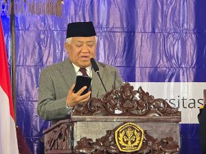 Sumbawa, SelarasNews.id – Ketua Dewan Penyantun Universitas Samawa (UNSA), Prof. Dr. M. Din Syamsuddin, membacakan sambutan Menteri Pendidikan Tinggi, Sains, dan Teknologi, Prof. Brian Yuliarto, yang berhalangan hadir karena menjalankan tugas negara.