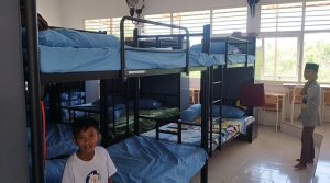 “Setiap siswa tinggal di asrama terpisah antara putra dan putri, dengan fasilitas tempat tidur susun, lemari pribadi, meja belajar, toilet dan shower terpisah di luar kamar. Begitu juga dengan fasilitas belajar dan pendukung lainnya sangat memadai,” jelasnya.