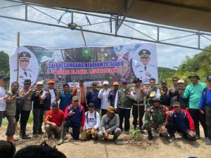 Dalam kegiatan tersebut, Polres Sumbawa tidak hanya hadir secara seremonial. Satu pleton personel Sat Samapta, jajaran Polsek Lunyuk, serta dukungan dari Brimob Yon B Pelopor terpantau turun langsung bahu-membahu bersama Bupati Sumbawa dan masyarakat untuk menanam ratusan bibit pohon produktif seperti Kemiri, Sengon Laut, dan Alpukat.