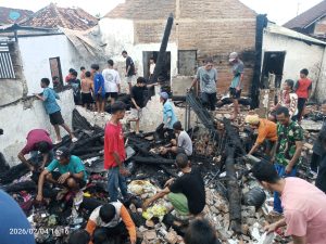 Kerugiannya meliputi rumah beserta seluruh isinya terbakar 100 persen, dua unit sepeda motor, dan barang dagangan berupa bahan kelontong.
