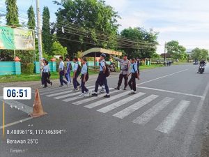 Dalam pelaksanaan tugas kali ini, dua personel Polsek Utan, yakni Aiptu Burhanudin dan Aipda Imd Arya Widana, diterjunkan langsung di depan SMPN 1 Utan serta SDN 4 Kecamatan Utan. Petugas tidak hanya melakukan pengaturan kendaraan yang melintas, tetapi juga membantu menyeberangkan para siswa-siswi yang baru tiba di sekolah.
