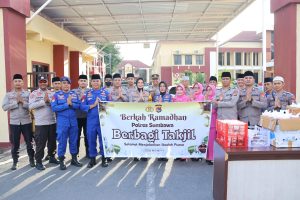 “Kami membagikan takjil dan paket sembako ini bersama petugas Sat Polairud Polres Sumbawa, Siwas Polres Sumbawa, Tahti Polres Sumbawa dan Keuangan Polres Sumbawa,” jelas Mulyawansyah.