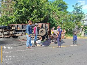 Sumbawa, SelarasNews.id – Insiden kecelakaan lalu lintas yang merenggut nyawa kembali terjadi di Jalan Raya Lintas Sumbawa – Bima, tepatnya di KM 24-25 depan Alfamart Desa Langam, Kecamatan Lopok, Kabupaten Sumbawa. Kecelakaan yang melibatkan satu unit Truk Mitsubishi Colt Diesel dan sebuah sepeda motor Suzuki Satria F ini mengakibatkan seorang penumpang sepeda motor meninggal dunia di lokasi kejadian, pada Kamis, (02/04) pagi.